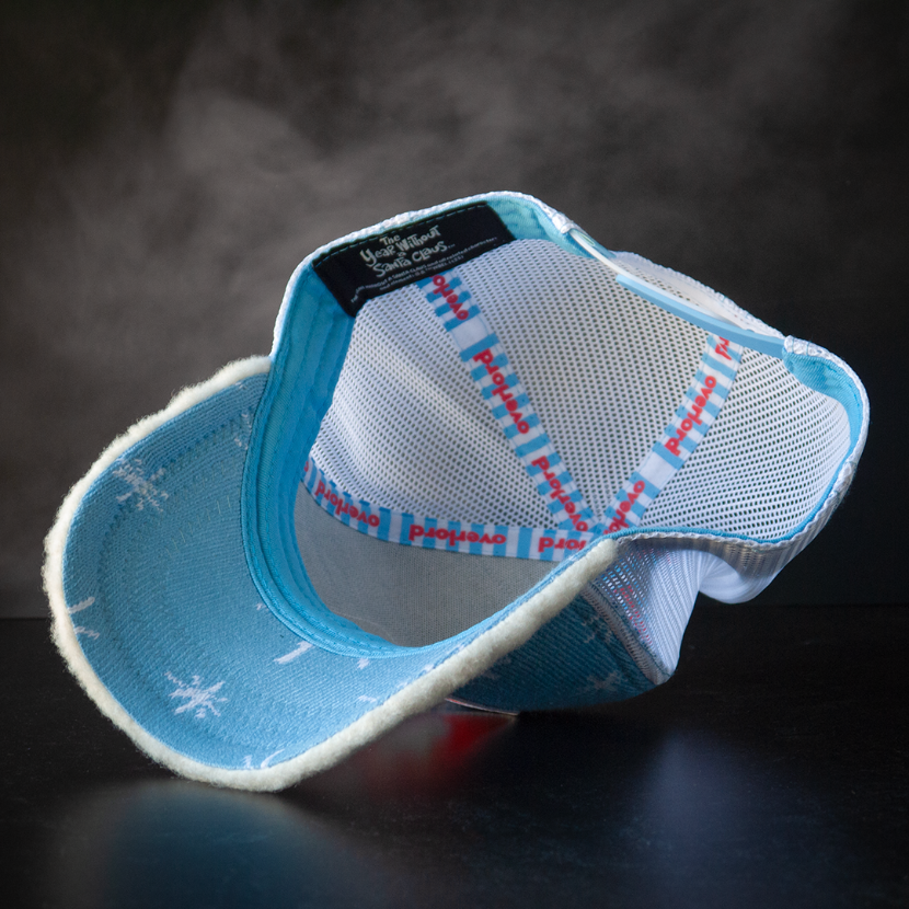 🥶 Cold-hearted in the best possible way. The Overlord x Year Without a Santa Claus – Snow Miser Trucker Cap turns up the chill with icy blue knit, fluffy white wooly sherpa brim, and falling snowflake embroidery that looks ripped straight from a Rankin/Bass blizzard. The woven patch features the frosty tyrant himself—long nose, pointy grin, and blue-on-blue swagger—set against a bold red backdrop that turns sub-zero into maximum drama. Inside, snowflake-stamped lining and signature Overlord details bring winter weirdness to every layer. ☃️🧊