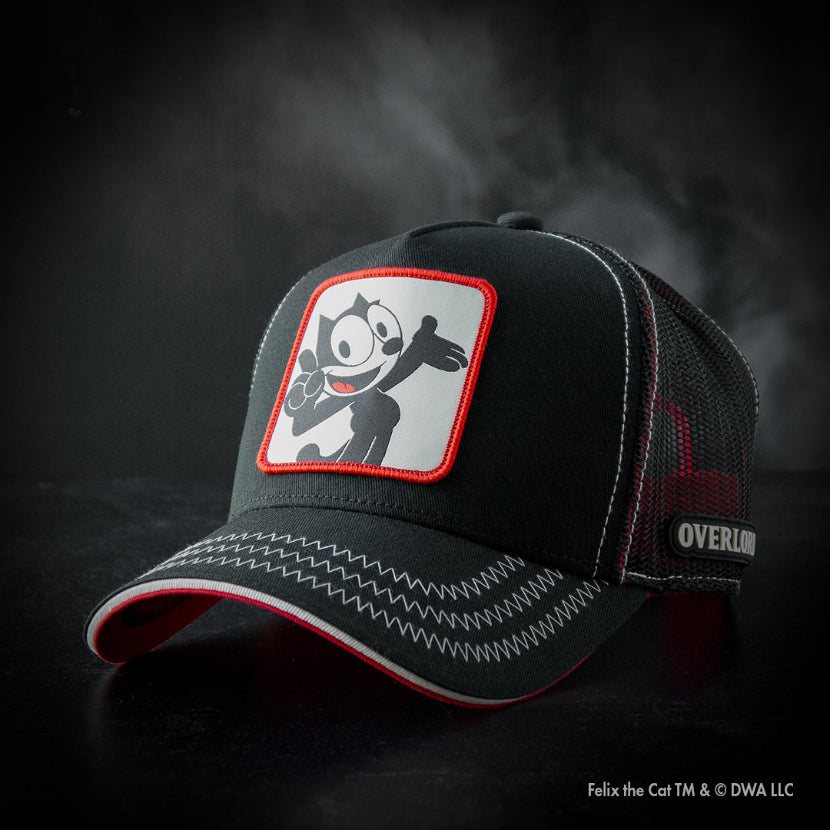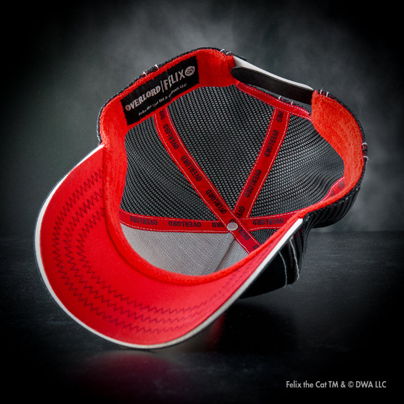 The OVERLORD x Felix the Cat Trucker Cap keeps it stripped down and sharp. All-black crown. Clean contrast stitching. That bold red interior flash. Timeless energy with modern edge.