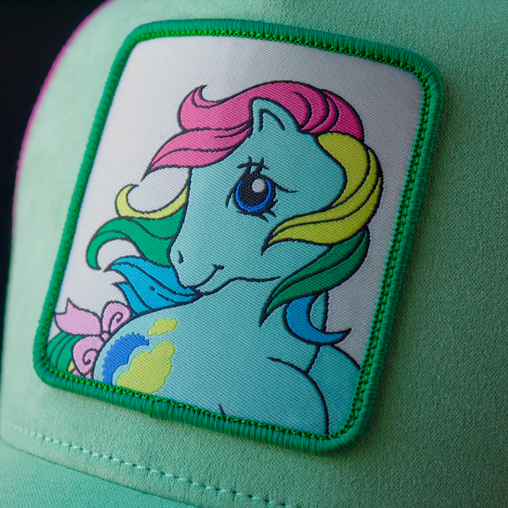 Sunlight’s rainbow mane and cheerful energy light up the woven patch, framed in mint green for extra pop. Hot pink mesh keeps things breezy, while the underbrim reveals a secret sky of yellow clouds—like carrying a little piece of summer everywhere you go.